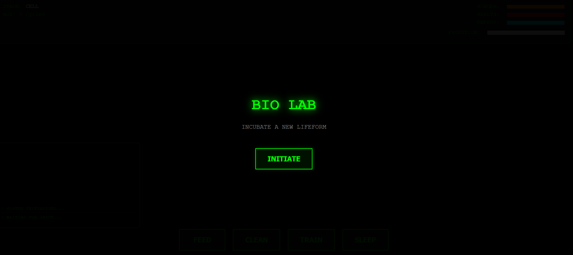 BIO LAB: EVOLUTION is a retro-futuristic virtual pet simulation that takes place entirely within a desolate computer terminal.